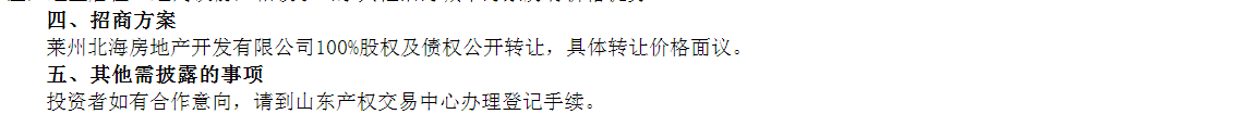 萊州北海房地產(chǎn)開(kāi)發(fā)有限公司100%股權(quán)及債權(quán)