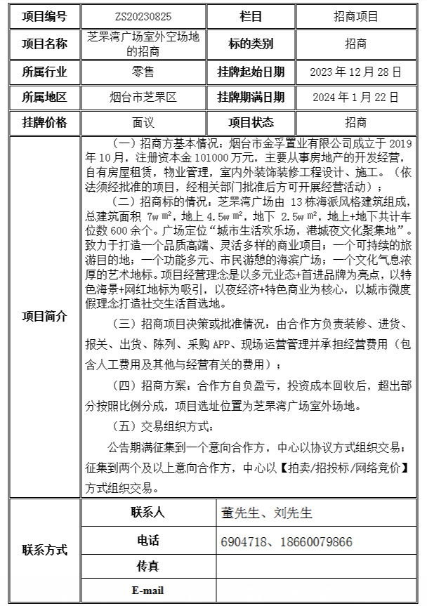 掛牌起止日期:2023年12月28日至2024年1月22日