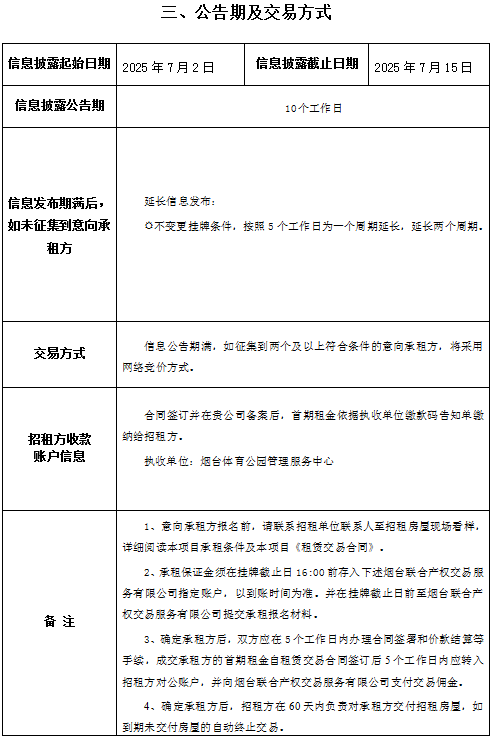 掛牌起止日期:2025年7月2日至2025年7月29日